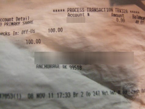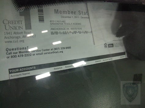 ATM, Vehicles, Koenig Residence, Keyes Residence, Matanuska Lake